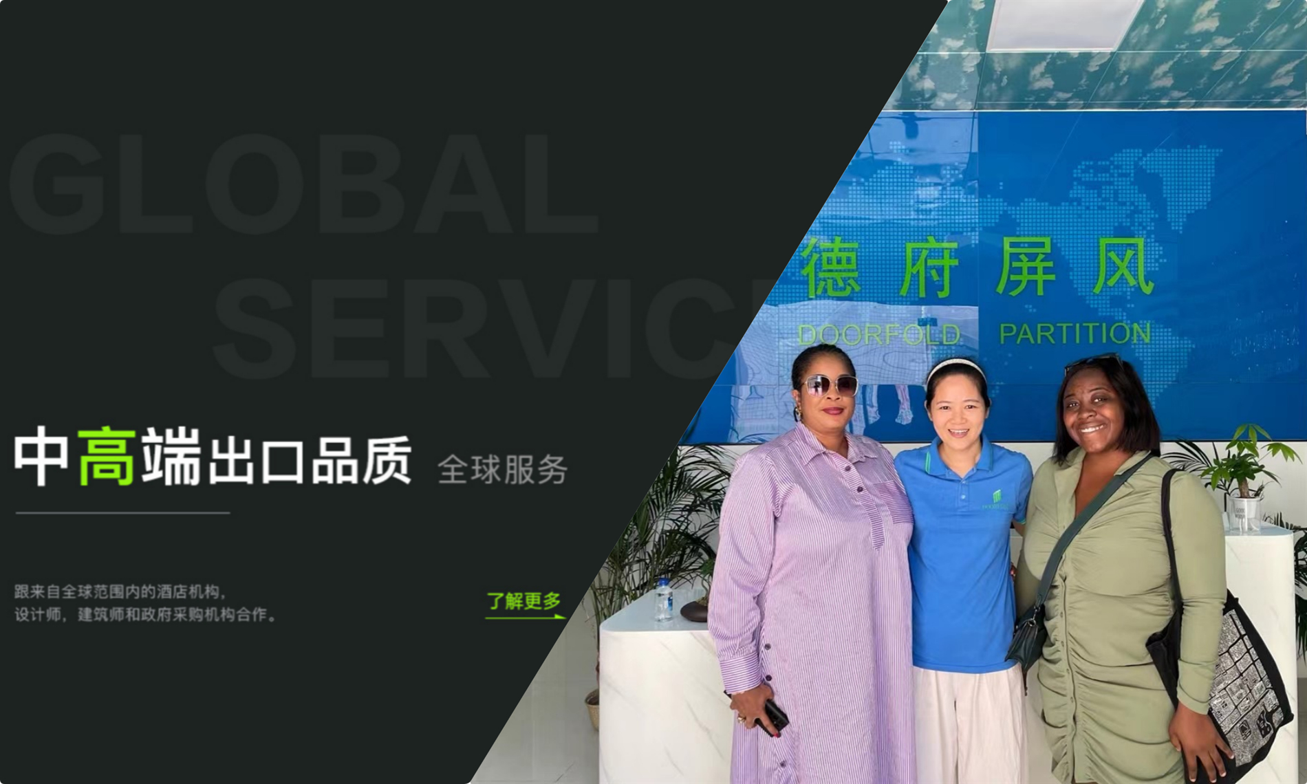 德府屏风是一家专业移动隔音隔断制造厂商,提供从隔断产品的设计,销售,生产,运输,安装和售后服务一站式解决方案。团队凭借超过15年的活动屏风和活动隔断的行业经验,研发并形成具备更高的隔音性能和更高品质的屏风隔断系统,以满足来自全世界各地的买家需求。